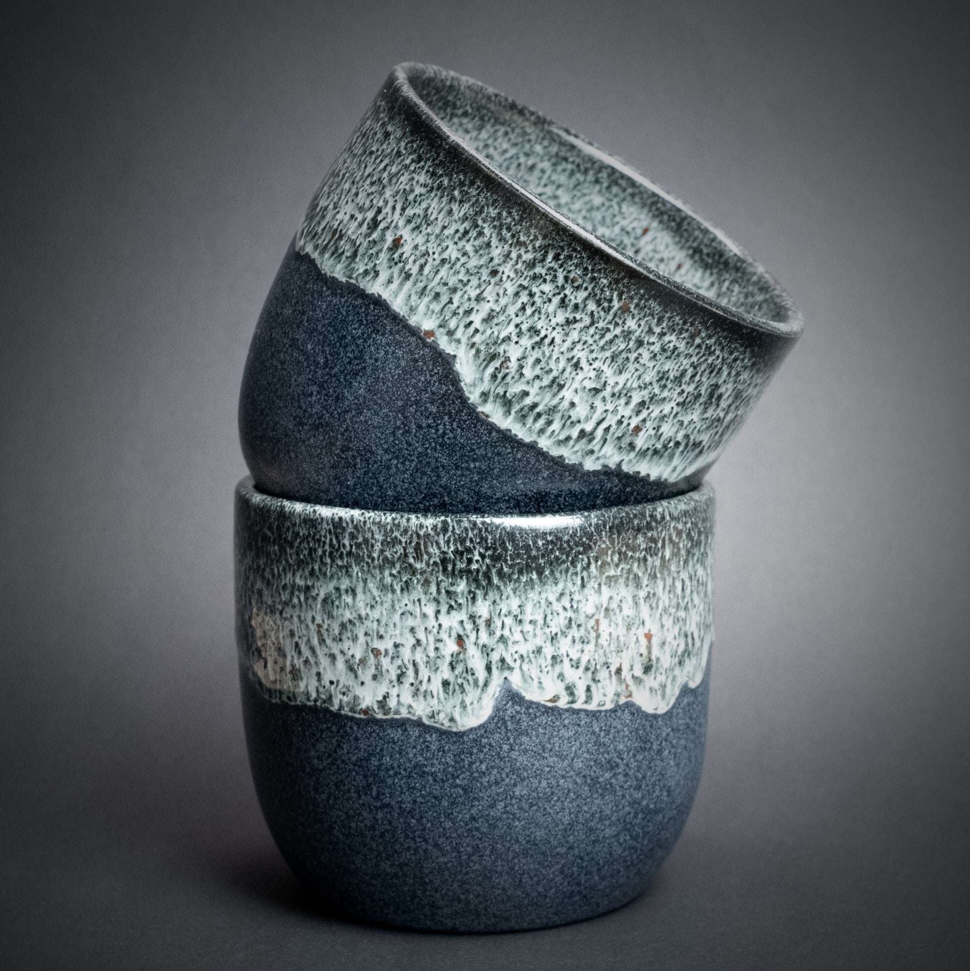 Wie alle unsere Becher wird auch Deep Sea von Hand auf der Töpferscheibe gefertigt. Kleine Unterschiede im Glasurverlauf und in der Sprenkelung sind Teil des handwerklichen Prozesses und machen jeden Becher zu einem echten Unikat.